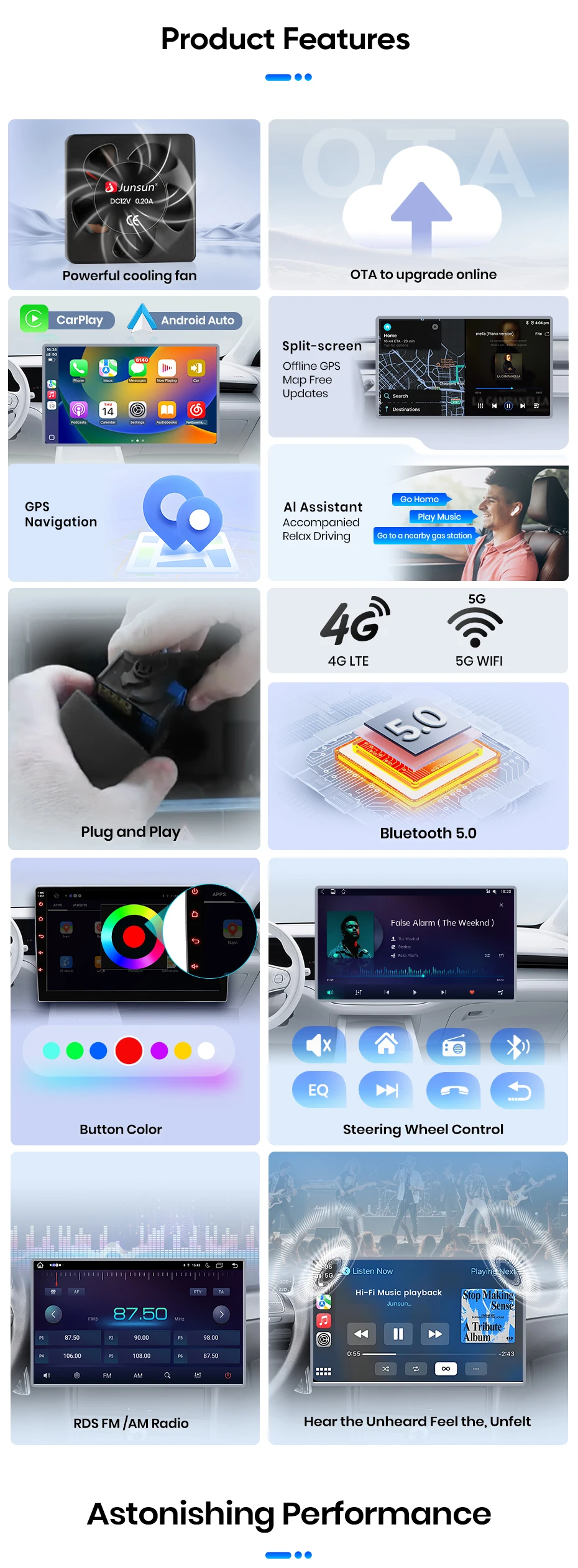 4. Innovation and Updates: Our commitment extends to continuous innovation in the hardware and software of our car multimedia player radios, providing a personalized experience. We offer free updates for firmware, software, UI, and navigation maps to enhance product functionality. At Junsun, you can find any type of radio you desire