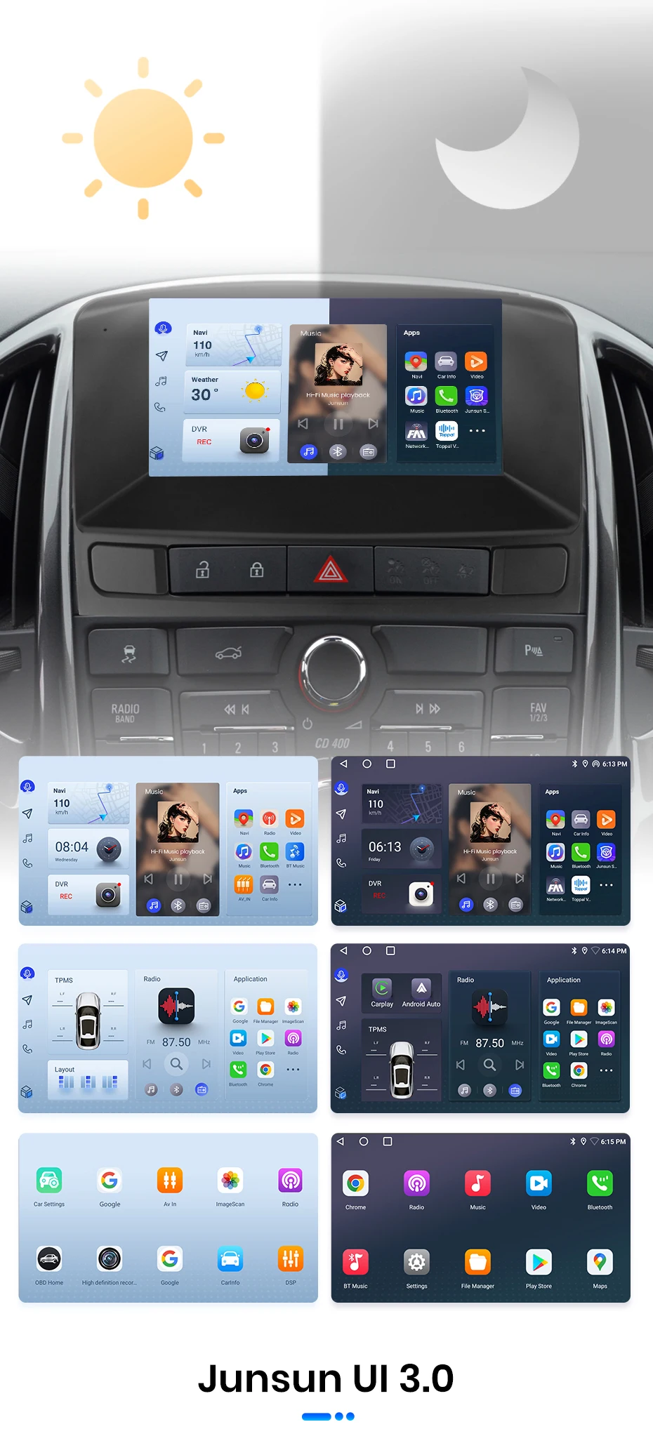 The screen is upgraded to IPS with resolution of 1280*720, which brings better color accuracy, contrast,and brightness. Enjoy immersive visual experience and easy operation on the 9/10 Inch big screen. Comes with Junsun UI themes that you can choose from, support day and night model, provide you a safer & comfortable driving experience especially at night.