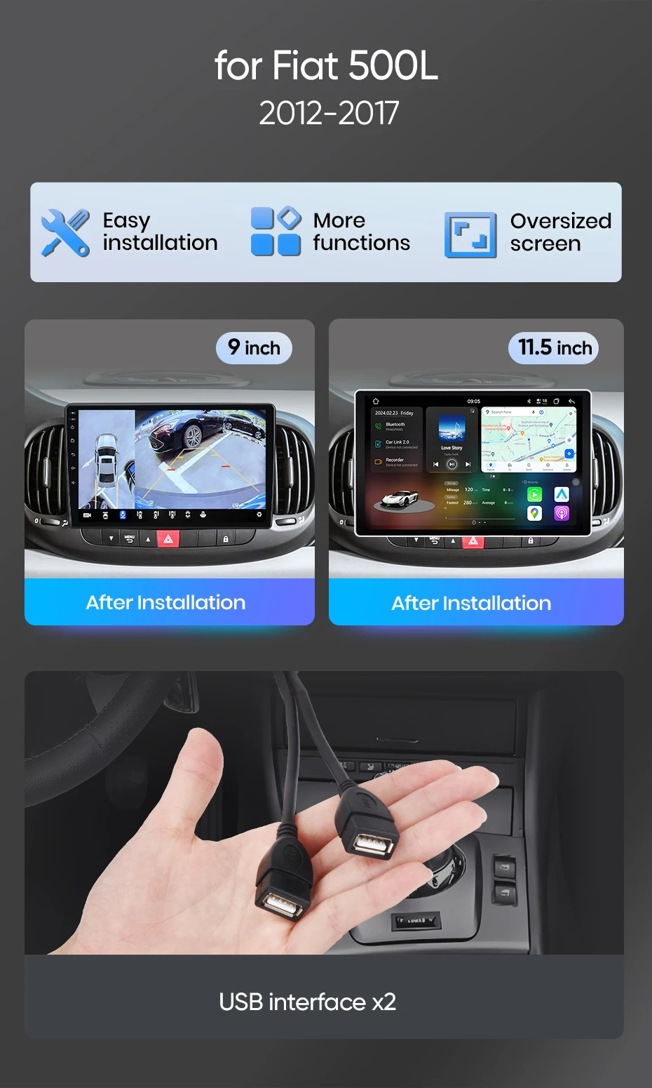 Junsun Wireless CarPlay Car Radio For Fiat 500L 2012 2013 2014 2015-2017 Android Multimedia