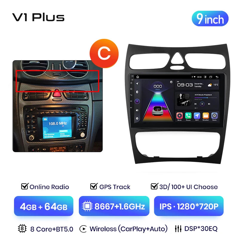 >> Radio der Junsun V3 PLUS-Serie für Mercedes Benz C-Klasse CLK-Klasse W203 W209 S203 A209 2000 2001 2002 2003 2004 2005