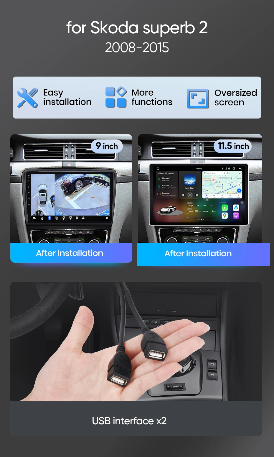 Junsun Wireless CarPlay Car Radio For Skoda Superb 2 2008 2009 2010 2011 2012 2013 2014 2015 Android Multimedia