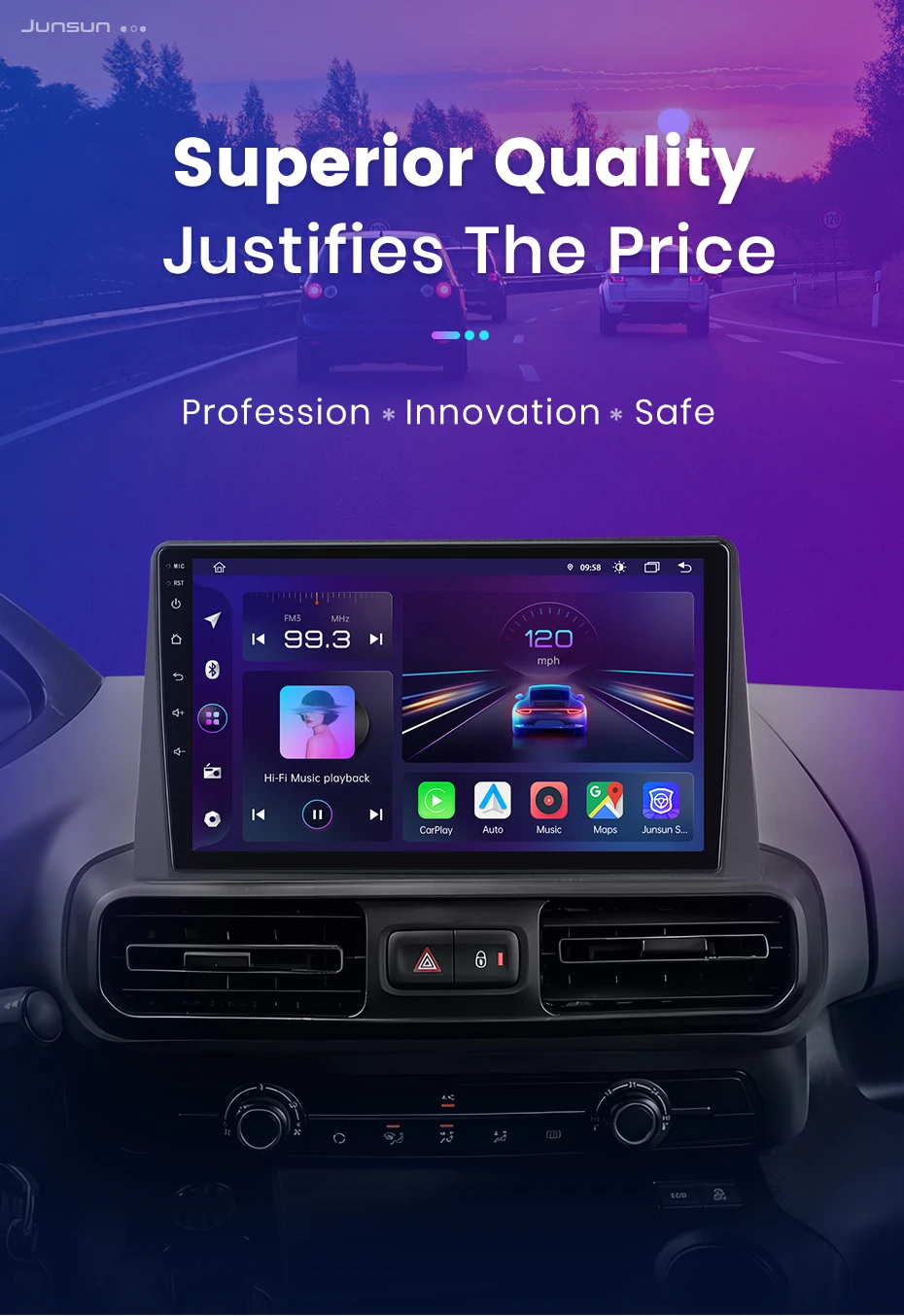 Junsun Wireless CarPlay Car Radio For Citroen Berlingo 2019 Peugeot Partner Rifter 2020 Opel Combo Android Multimedia
