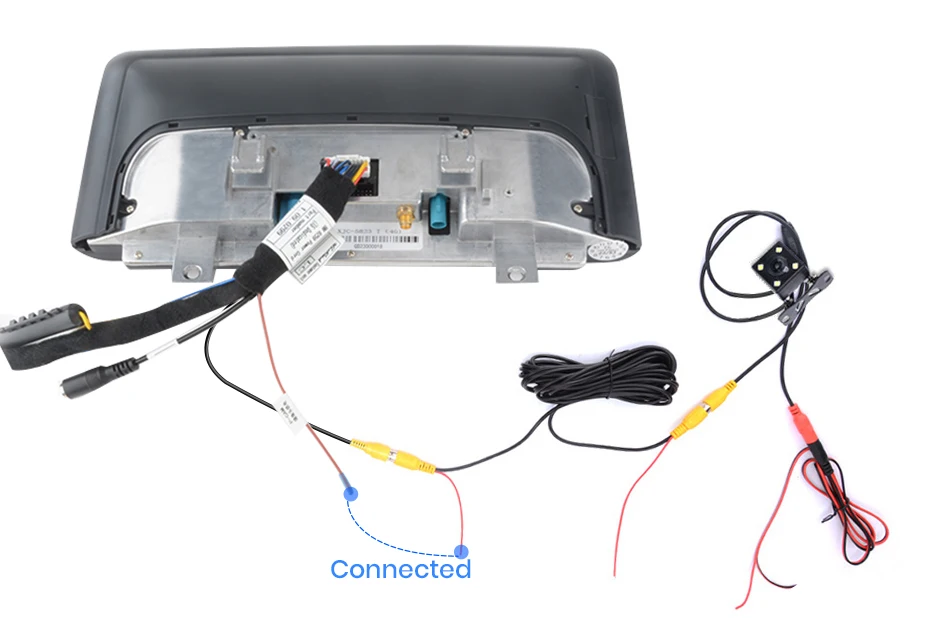 Please connect the camera's red cable to the brown cable, and the camera's yellow port to the yellow port. Please do not connect the cable of the backup light.