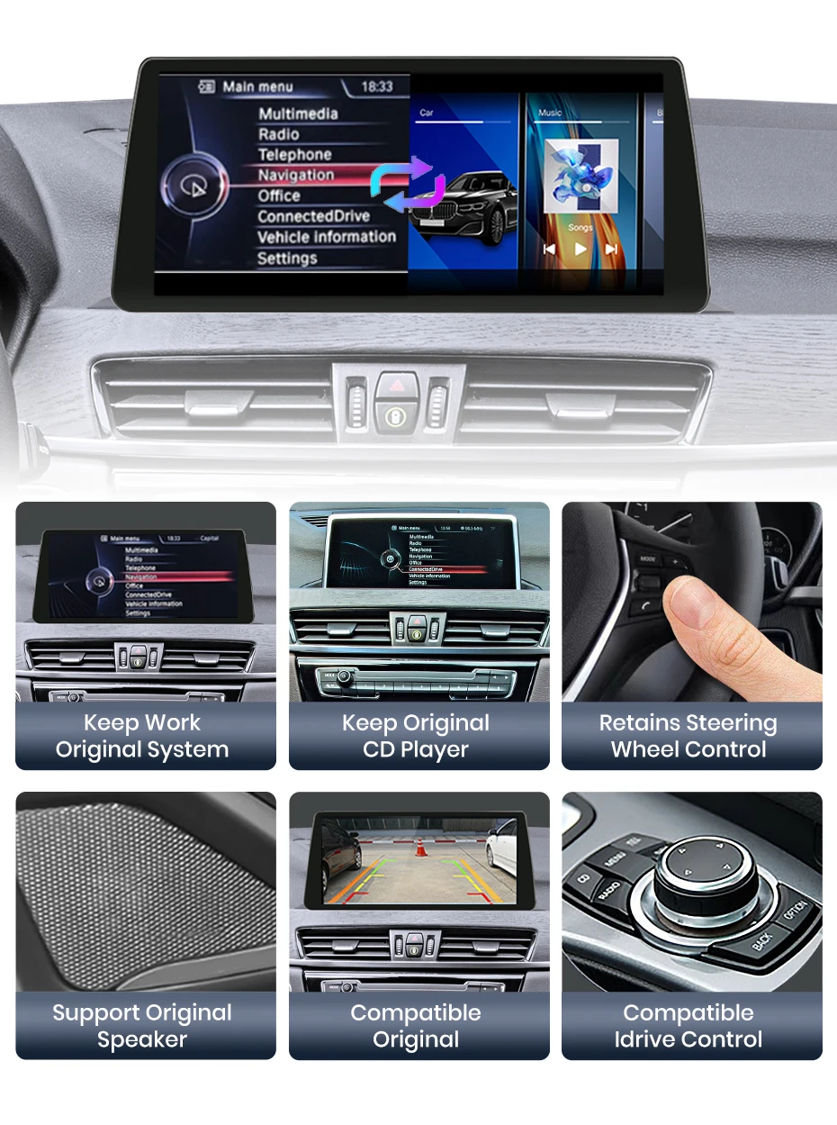 The function of iDrive is reserved, it can still control the system of your original car, and it can also control the application program of the first interface of the Android system