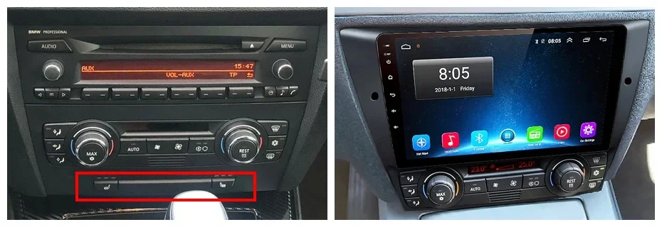 1. For BMW E90 E91 E92 E93, after the installation of the radio, it cannot be completely parallel to the center console of the car, there will be a protrusion of 1 cm (for the style after installation, please refer to the picture).
