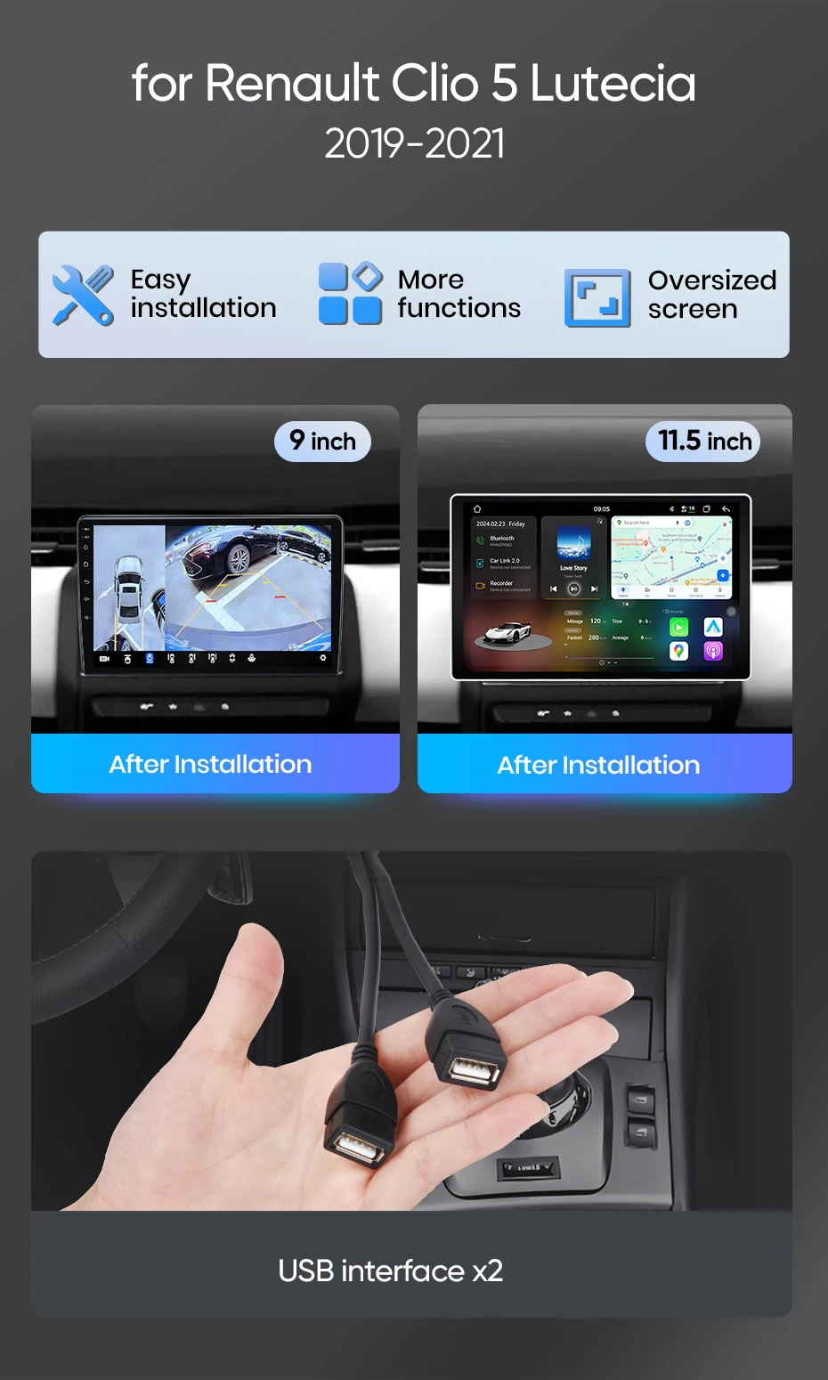 4.Screen Mirroring: Mirror your iOS/Android smartphone display onto the 9.5/10.1/11.5-inch touchscreen for easy access to apps, videos, and content.