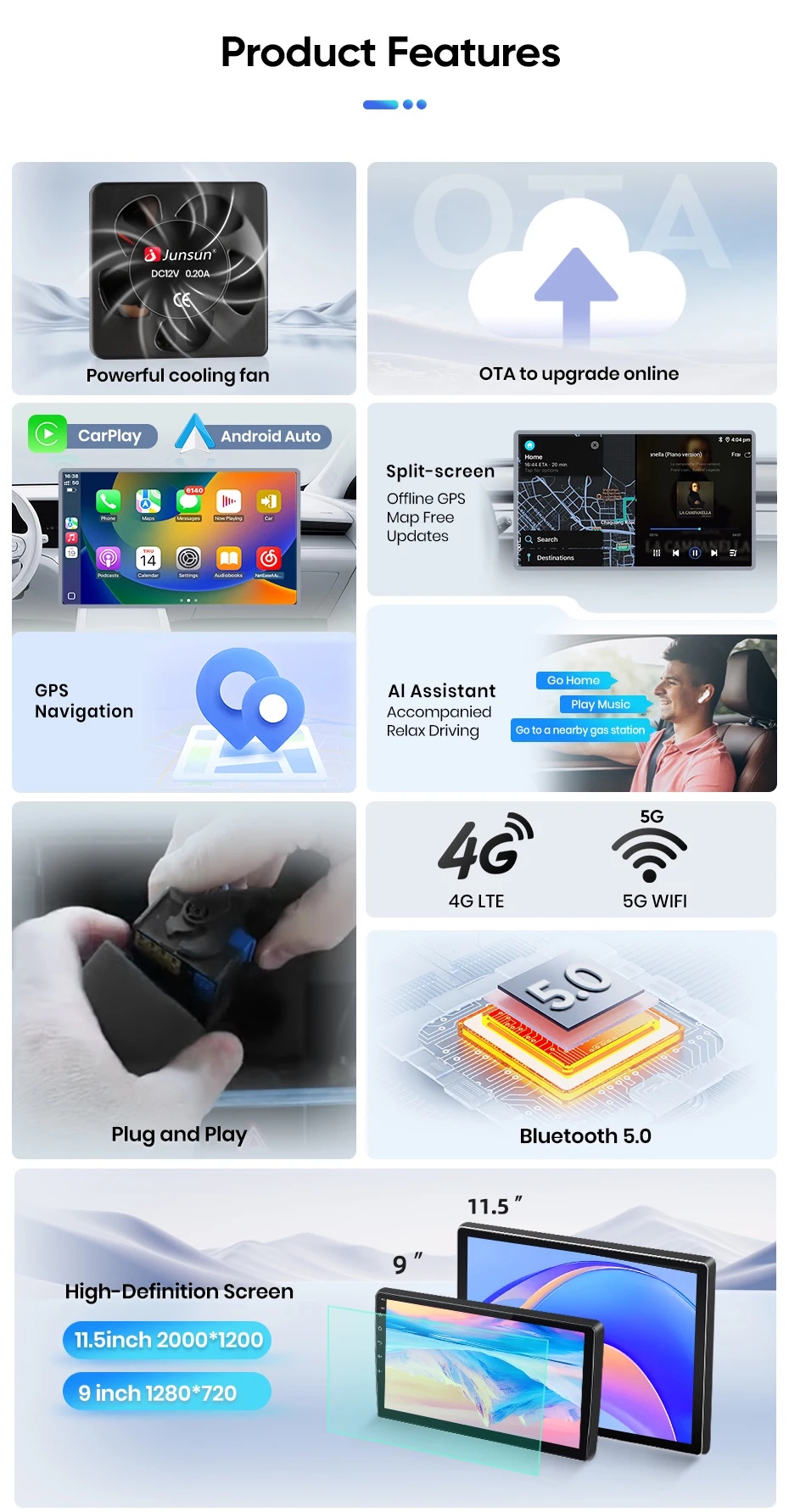 4. Innovation and Updates: Our commitment extends to continuous innovation in the hardware and software of our car multimedia player radios, providing a personalized experience. We offer free updates for firmware, software, UI, and navigation maps to enhance product functionality. At Junsun, you can find any type of radio you desire.