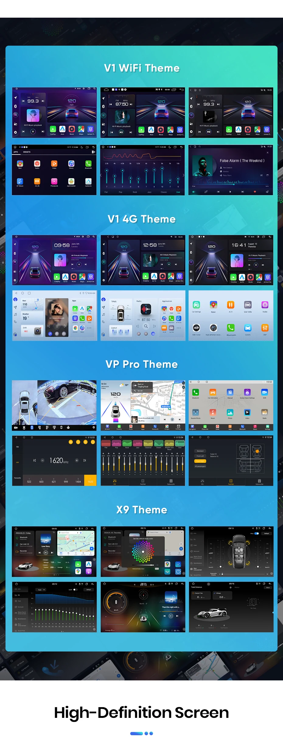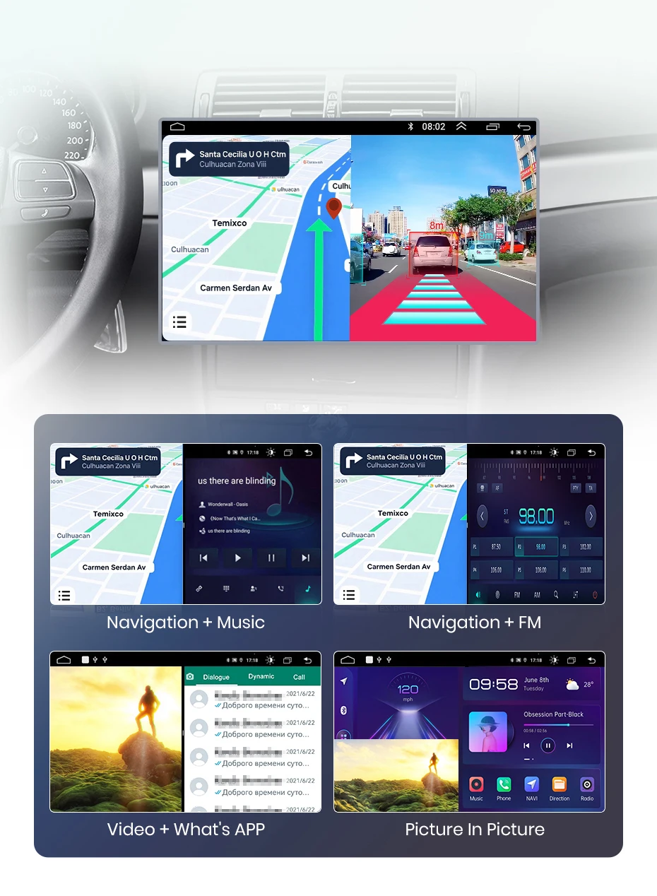 3.Powerful performance, empowering your car: Equipped with a 4-8 core processor (1.3-2.7GHz) and flexible memory/storage combinations (2GB/4GB/6GB RAM + 32GB/64GB/128GB/256GB ROM), it handles multitasking effortlessly with stable, lag-free operation.