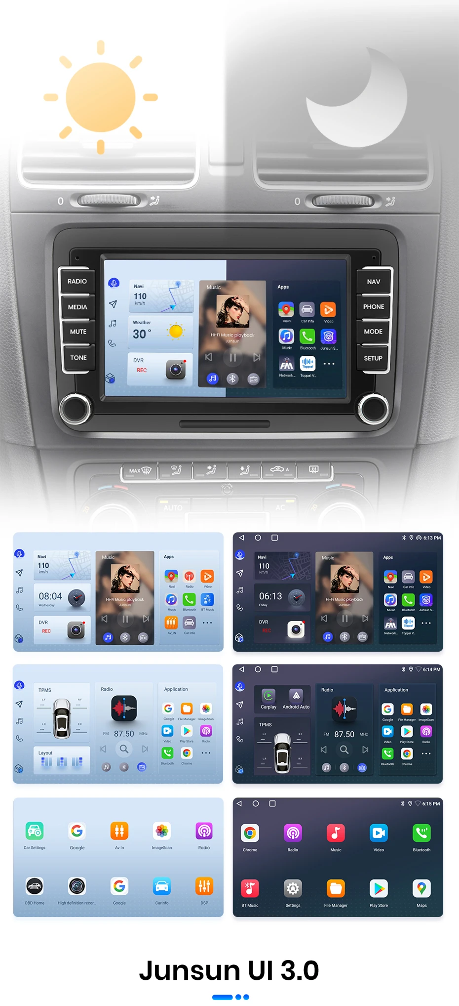 4. Innovation and Updates: Our commitment extends to continuous innovation in the hardware and software of our car multimedia player radios, providing a personalized experience. We offer free updates for firmware, software, UI, and navigation maps to enhance product functionality. At Junsun, you can find any type of radio you desire.