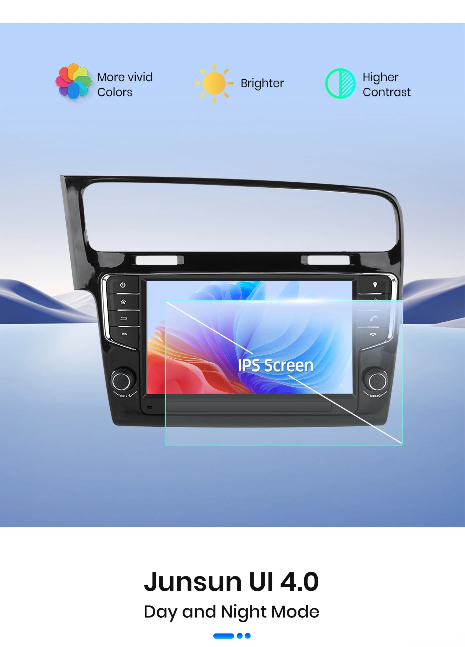 The screen is upgraded to IPS with resolution of 1280*720, which brings better color accuracy, contrast,and brightness. Enjoy immersive visual experience and easy operation on the 9/10 Inch big screen. Comes with Junsun UI themes that you can choose from, support day and night model, provide you a safer & comfortable driving experience especially at night.