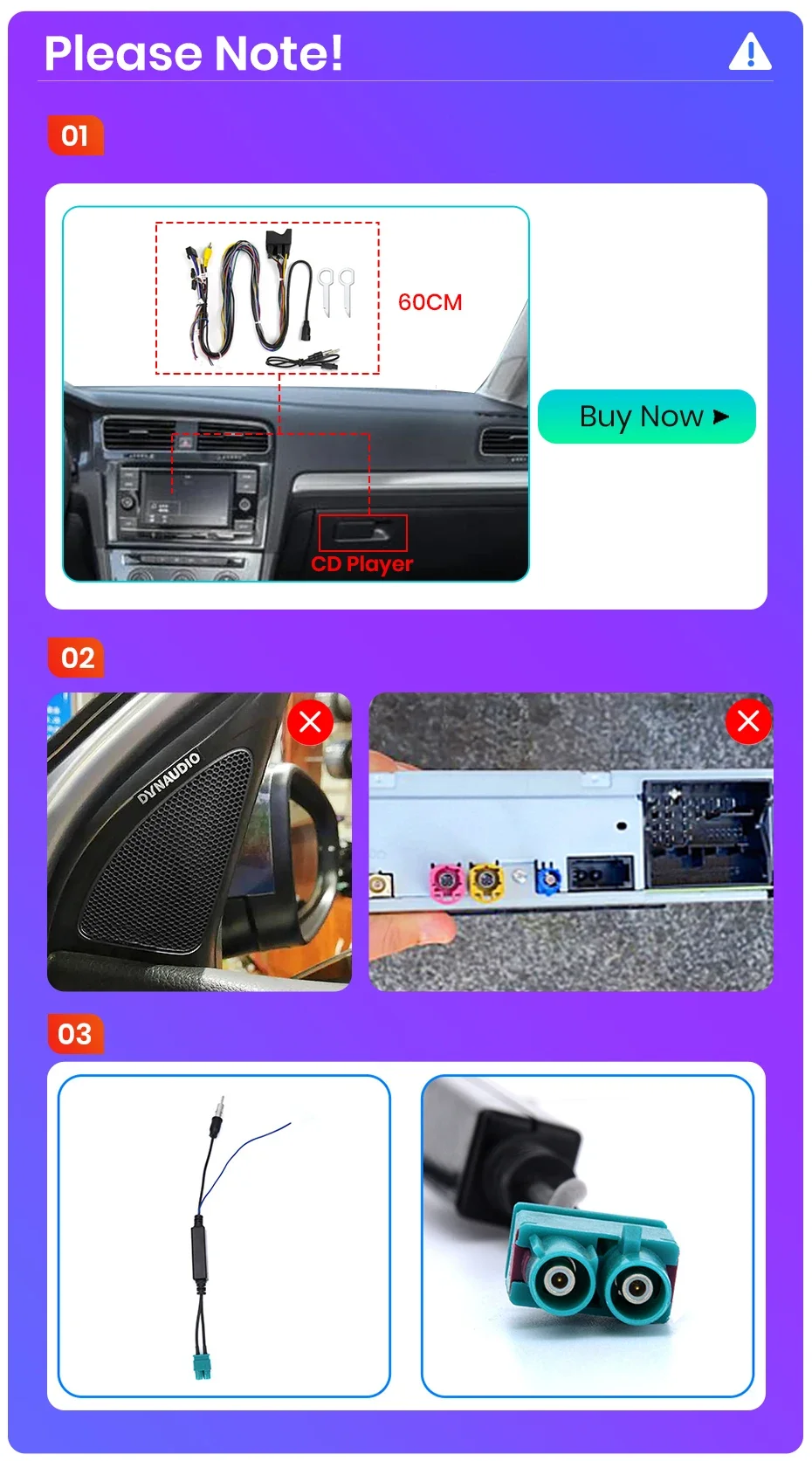 1, If you have an original CD player in the passenger compartment, you will need to order an extra long cable, contact us to order