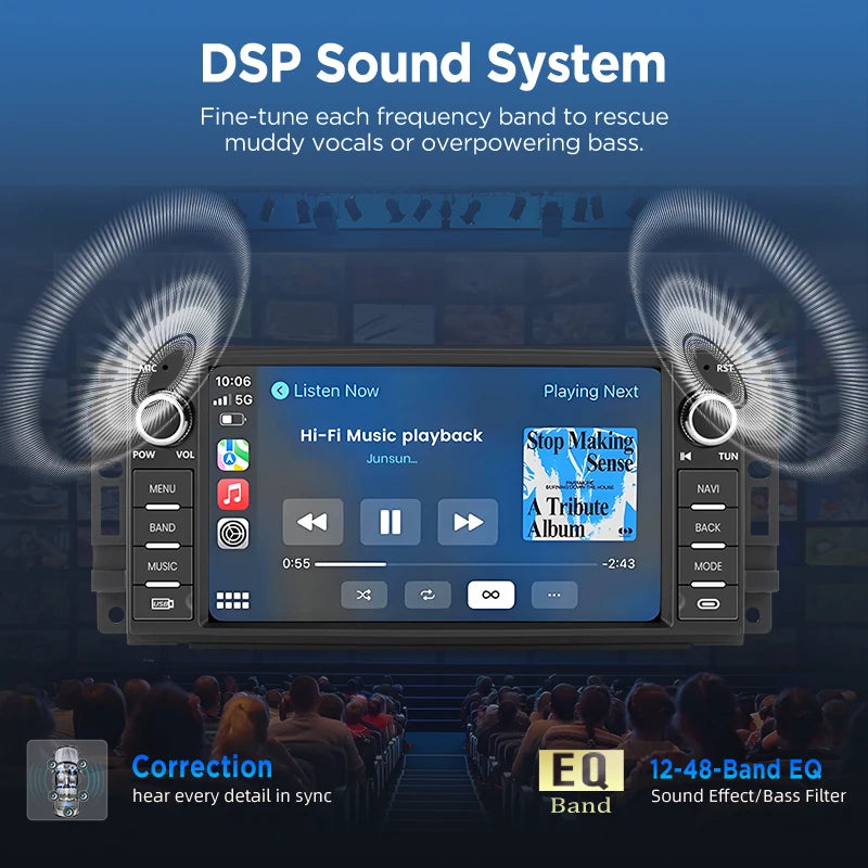 Junsun Wireless CarPlay Car Radio For Jeep Wrangler Dodge Grand Cherokee Chrysler 300C Patriot Command Caliber Android Multimedia